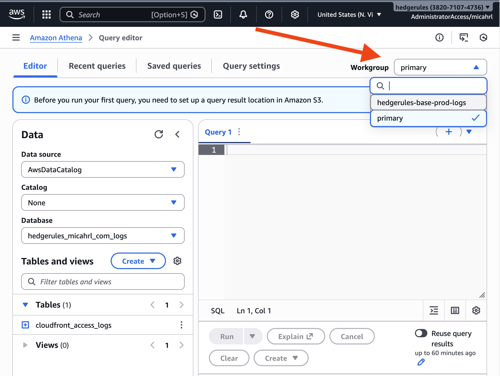 Make sure you select the correct Athena workgroup in the upper right.